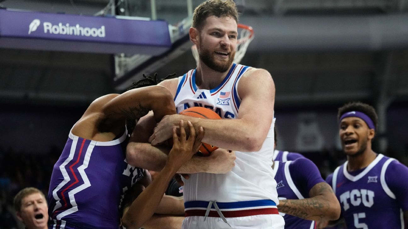 FORT WORTH, Texas — Kansas big man Hunter Dickinson grabbed an offensive rebound and had the ball cradled into his body with both arms, with no intention of letting TCU take it away from him.