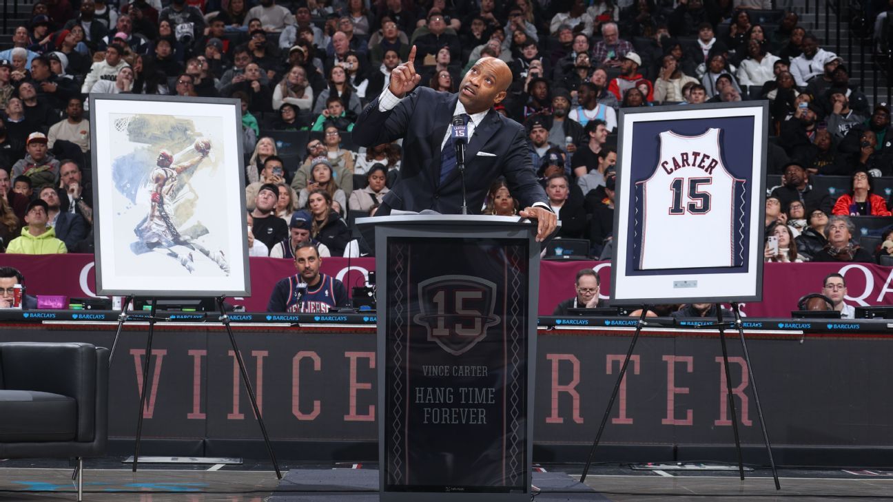 Carter and his much-celebrated No. 15 reached new heights again when the Brooklyn Nets retired it at halftime of their game Saturday against the Miami Heat.