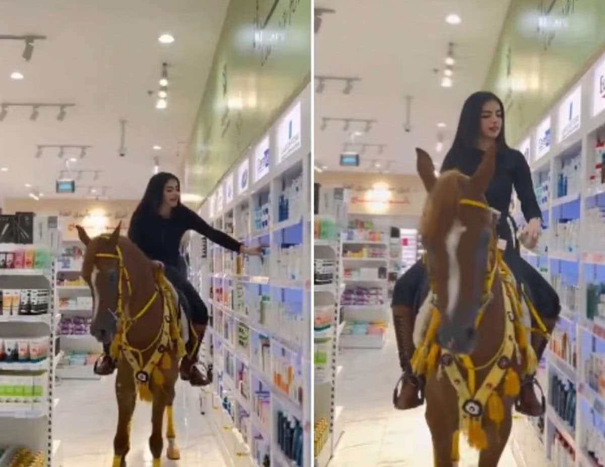 According to Saudi media, the woman who rode the horse to the pharmacy is renowned equestrian Shahad Al-Shammari.