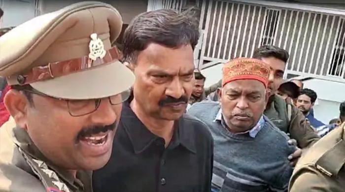 Indian police personnel arrest Rakesh Rathore, a lawmaker from India’s opposition Congress party. — NDTV