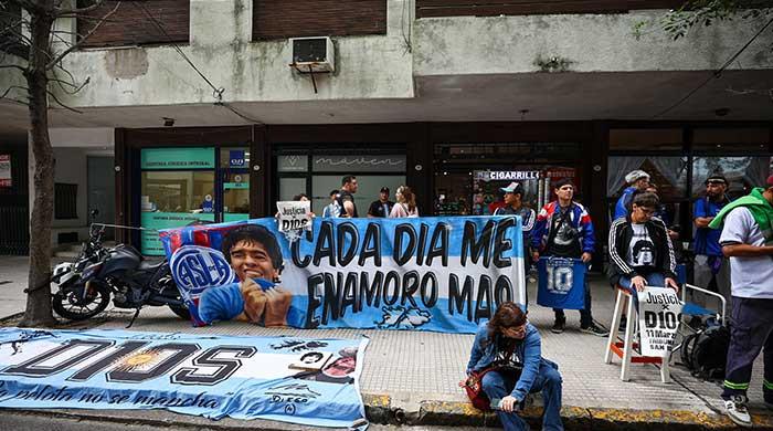 Fans of Argentine football legend Diego Armando Maradona gather, on the day of a court case against people charged with Maradona’s death, in Buenos Aires, Argentina, March 11, 2025. — Reuters