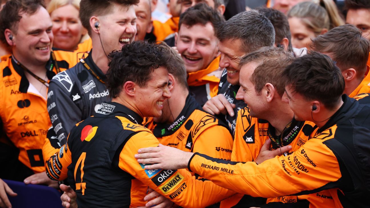 “It was amazing,” Norris said. “It was a tough race, especially with Max [Verstappen] behind me. I was pushing especially the last two laps, which was a little bit stressful but an amazing way to start the year.