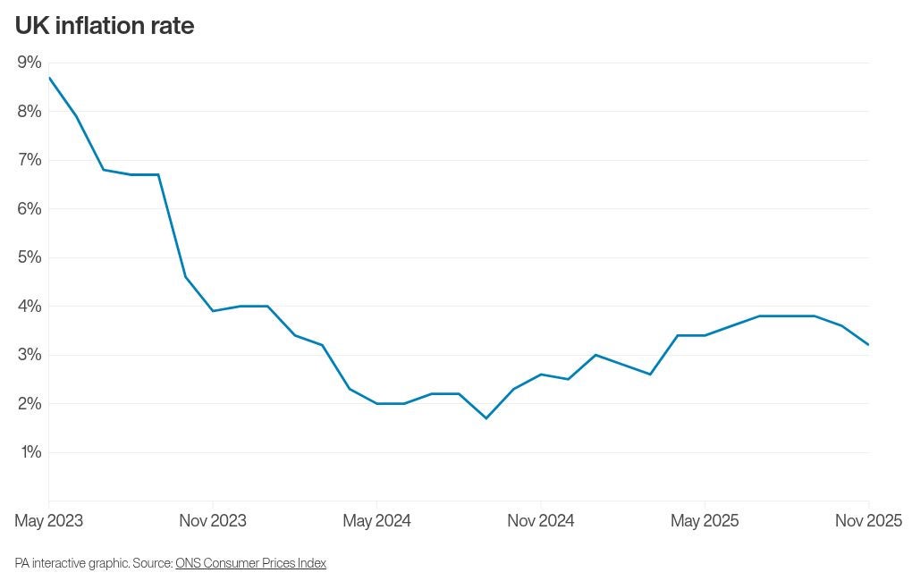 Consumer Prices Index (CPI) inflation fell to 3.2 per cent in November, down from 3.6 per cent in October, the Office for National Statistics (ONS) said – the lowest CPI rate since March this year and a notably bigger drop than the 3.5 per cent that most economists were expecting.