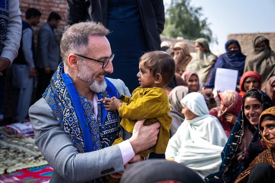 During his visit to flood-affected Jalalpur Pirwala, the consul general toured a health and water, sanitation, and hygiene (WASH) project implemented through UNICEF with US government support. He observed child malnutrition screening, the distribution of therapeutic food, and the restoration of water and sanitation facilities, and met with mothers, caregivers, and frontline health workers.