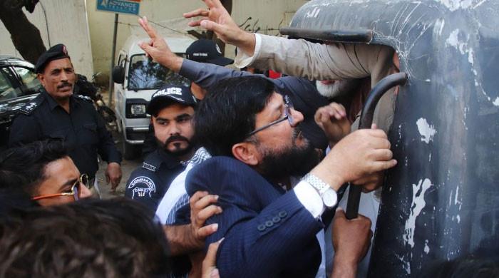 KARACHI: Police on Sunday briefly detained Jamaat-e-Islami (JI) MPA Muhammad Farooq and several party workers during a press conference outside the Election Commission of Pakistan (ECP) office in Karachi.